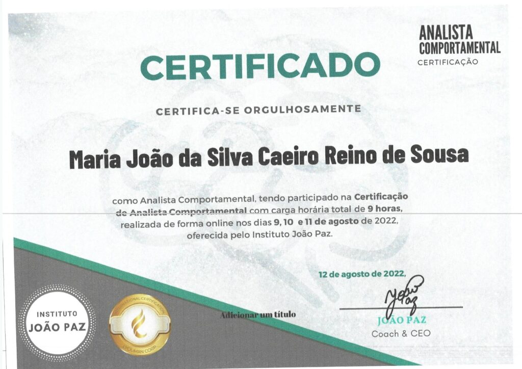 • Valorizando o sentimento humano e respeitando o ritmo e a singularidade de cada pessoa que nos procura.